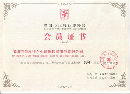玩具行業(yè)協(xié)會(huì)會(huì)員證書(shū)