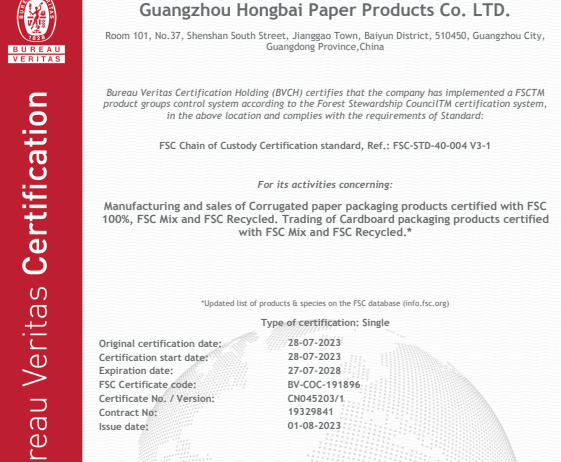 在創(chuàng)思維驗(yàn)廠網(wǎng)老師專業(yè)技術(shù)、全程跟進(jìn)耐心細(xì)致輔導(dǎo)以及公司全體員工配合下,一次性順利通過BV- FSC認(rèn)證,為將來公司發(fā)展奠定了良好的發(fā)展基礎(chǔ),既開拓了市場(chǎng)同時(shí)也增加了消費(fèi)者對(duì)公司的信賴,在這里再次祝賀廣州宏柏印刷包裝有限公司2023年一次性成功通過BV- FSC認(rèn)證,同時(shí)也期待未來再次與創(chuàng)思維驗(yàn)廠網(wǎng)合作!